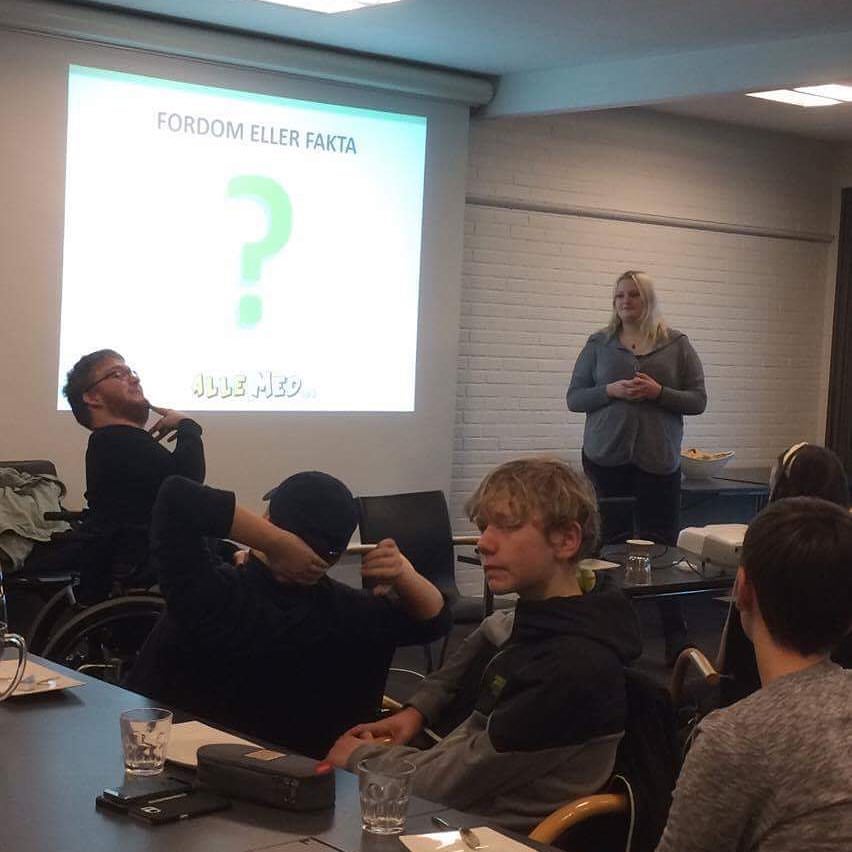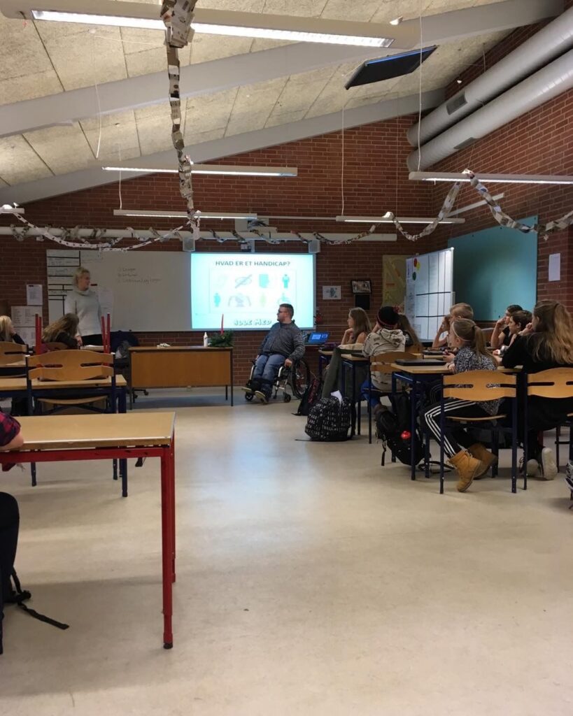 Som frontløber. Er jeg en del af et projekt, hvor vi kommer ud på skoler i hele Danmark. Vi fortæller om, hvordan man inkluderer personer med et handicap i skolelivet, både i undervisningen, i frikvarterene og uden for skolen.
